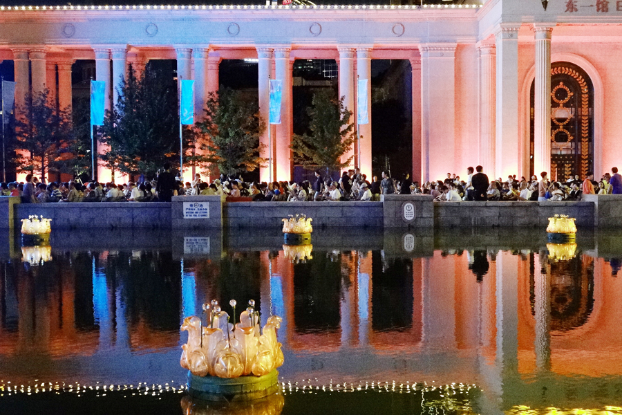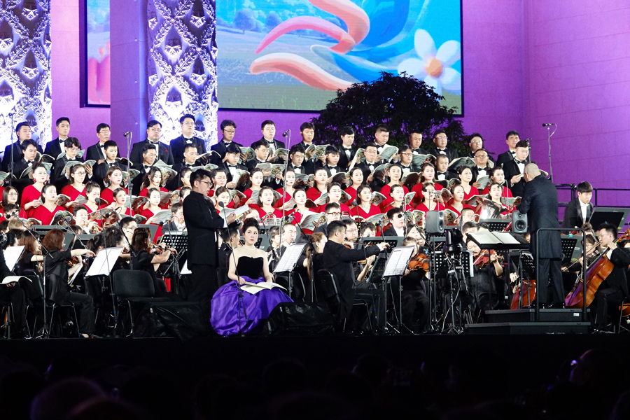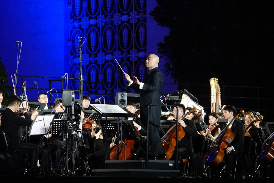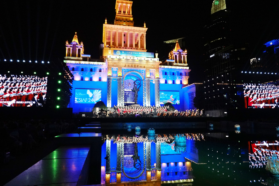 许忠执棒上海歌剧院交响乐团、合唱团、中国上海国际艺术节节日乐团,在水光夜色间为观众献上由德国作曲家卡尔·奥尔夫改编的中世纪诗篇力作《布兰诗歌》。